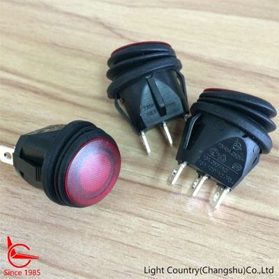Easy installation round waterproof power switch, φ 20mm, with red light, >10,000 life cycles.